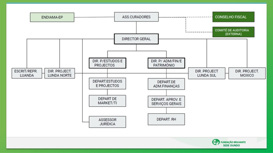 Direcção Geral – é o órgão executivo encarregue pela boa administração do património da Fundação bem como dar cumprimento e fazer cumprir de acordo com a lei e os estatutos as deliberações emanadas pelo Conselho de Curadores da Fundação Brilhante.